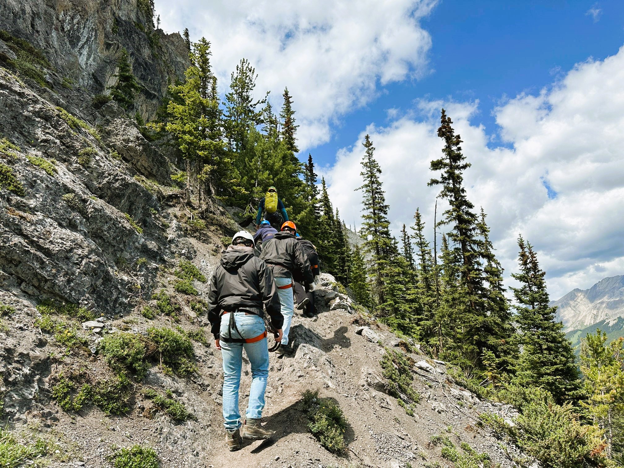 Je gaat eerst met een zetellift omhoog langs bergen, bossen en valleien naar de Mount Norquay. Daar wacht de gids jullie op en krijg je stevige hoge wandelschoenen (belangrijk om je enkels te beschermen bij het wandelen of klimmen). Je hoeft ze dus niet noodzakelijk zelf mee te brengen. Ze voorzien ook, indien nodig, regenjasjes en regenbroeken maar wij hadden gelukkig mooi weer.