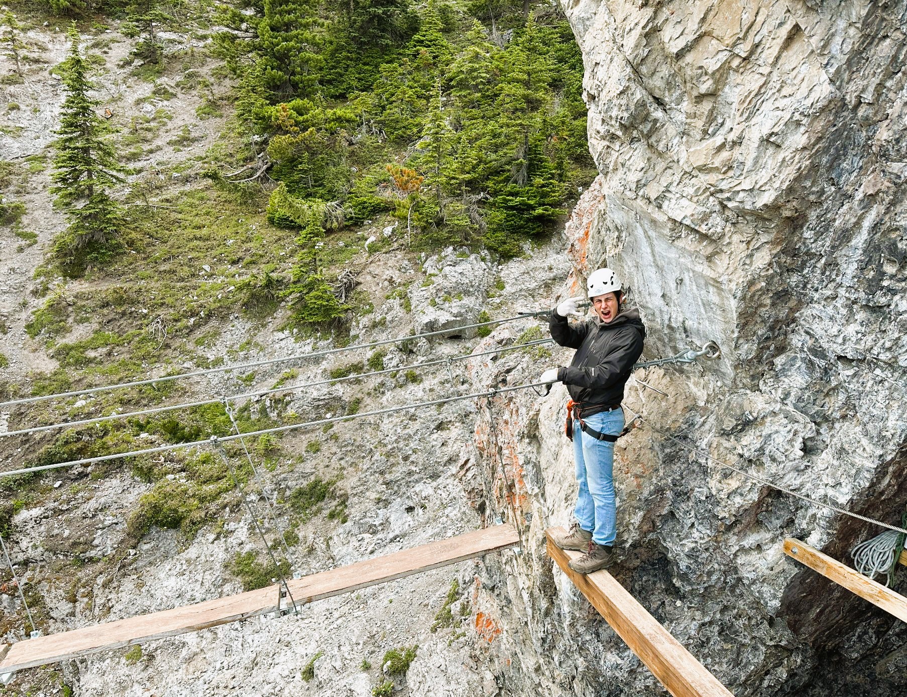 Vandaag ga je Banff National Park ontdekken op een heel originele manier: de Banff via ferrata is als een speeltuin in de lucht, waar grote en kleine avonturiers samen nieuwe hoogten bereiken. Trek je klimuitrusting aan en maak je klaar voor een zalig familieavontuur in de Rocky Mountains!