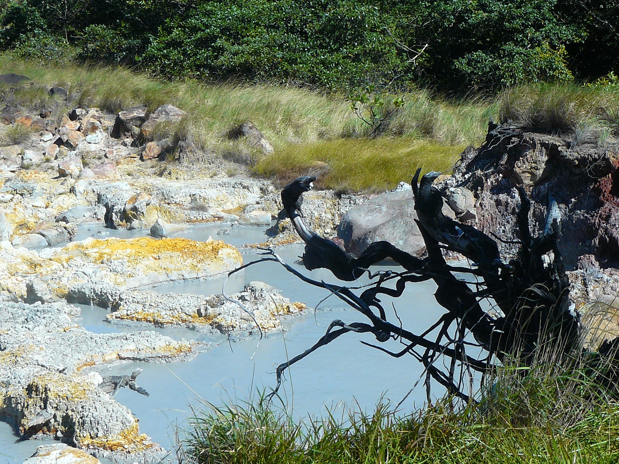 Het pad kronkelt tussen kleine watervallen, ruisende rivieren, geurende zwavelmeren, kolkende modderpoelen en mini-vulkaantjes.