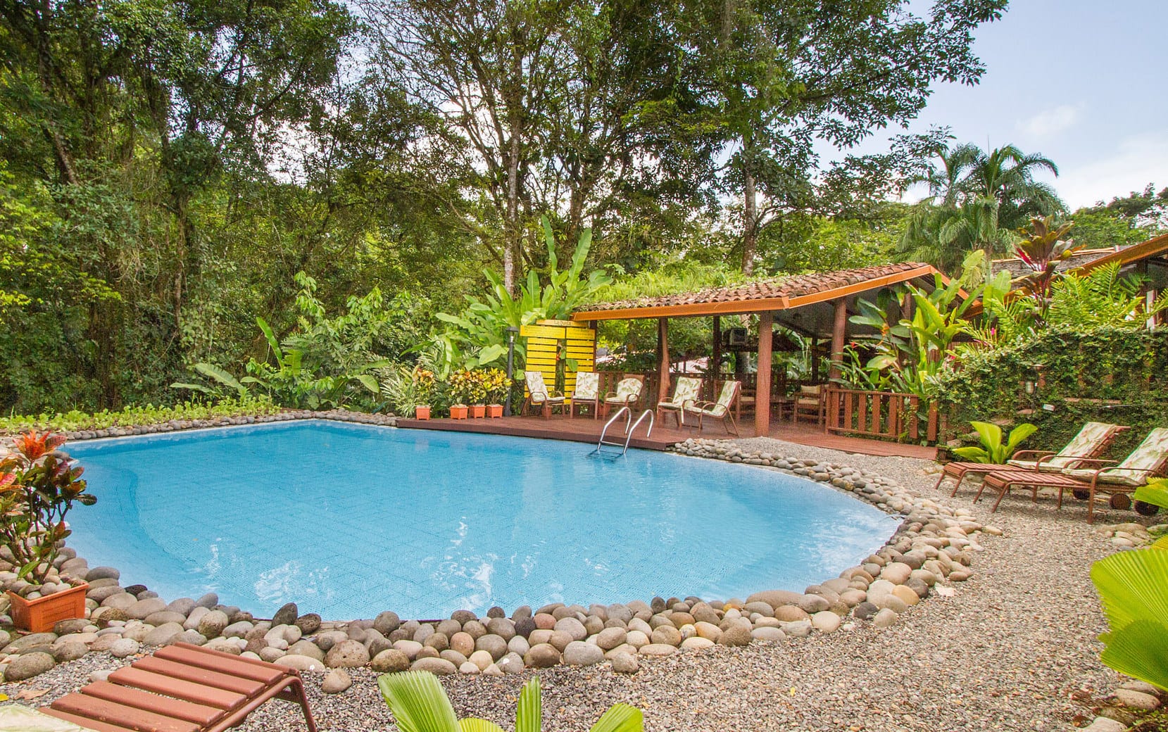 In de tuinen van je lodge kan je ook genieten van de heetwaterbronnen van de vulkaan, uniek en heel relax na een actieve dag!