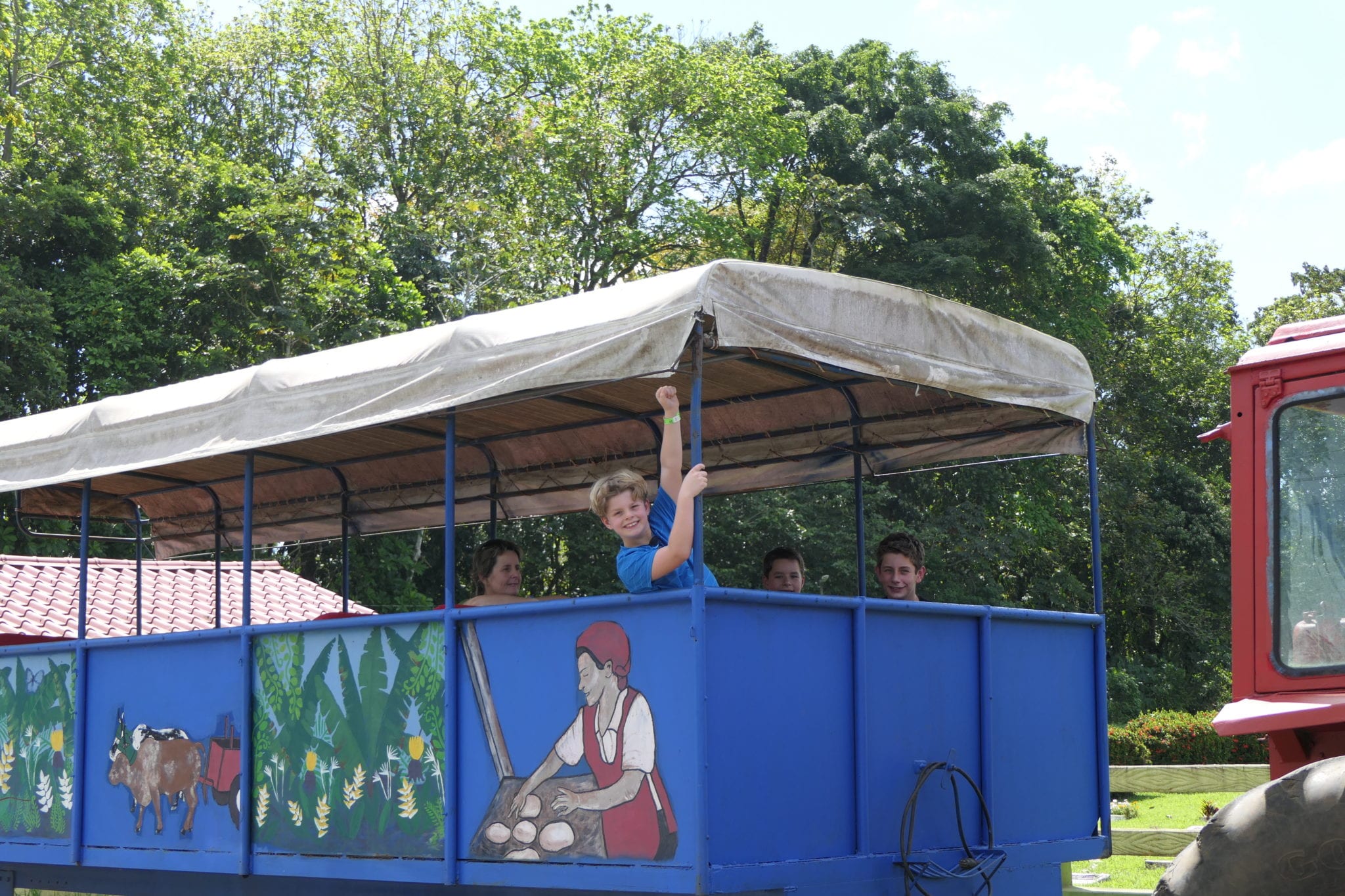 Vandaag staat een bezoek aan een lokaal schooltje op het programma, waar de kinderen jullie al uitgelaten staan op te wachten. Na een artistieke voorstelling van traditionele dansen en muziek op kindermaat in één van de klaslokalen, krijg je een rondleiding in de rest van de school. Zo krijg je een mooi beeld van de schoolgaande jeugd in Costa Rica. Daarna volgt een korte tocht door de velden in een wagen getrokken door de traktor van de boerderij.