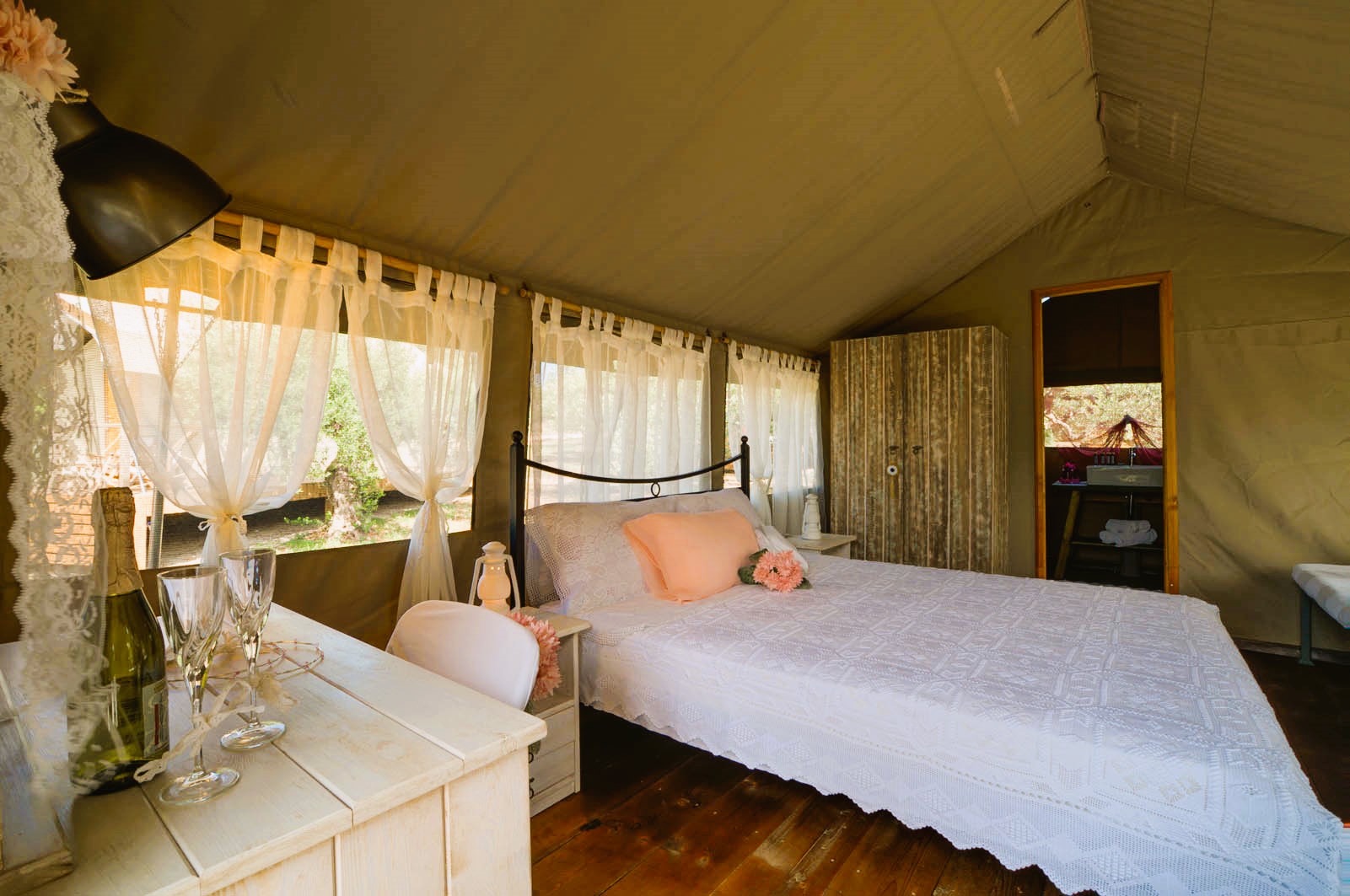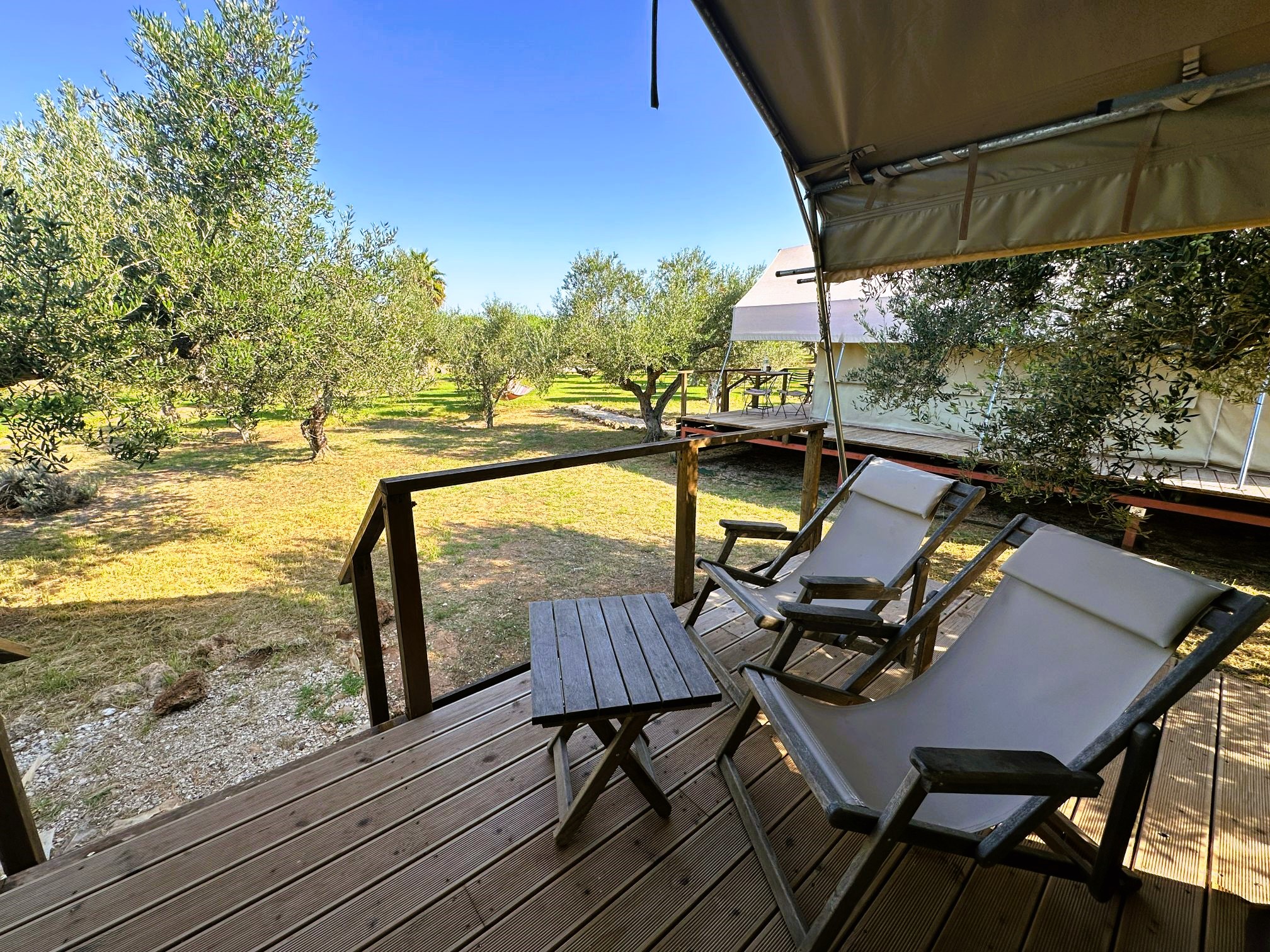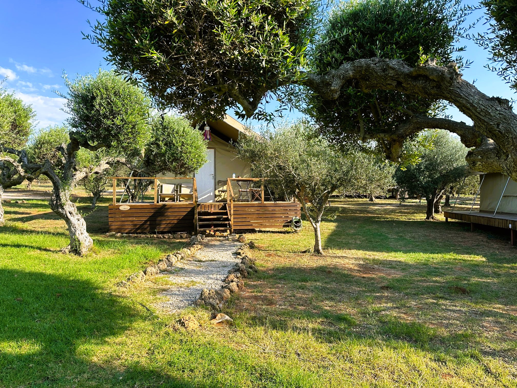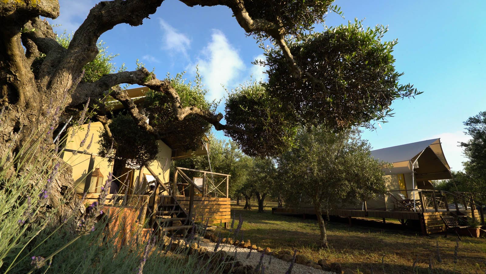 Zodra jullie toekomen, worden jullie betoverd door de magnifieke omgeving: tussen de indrukwekkende olijfbomen zijn grote, coole glamping tenten opgesteld. Deze tenten hebben allemaal een eigen terras, een badkamer en zelfs airconditioning. Een geweldige plek om te verblijven met gans het gezin!