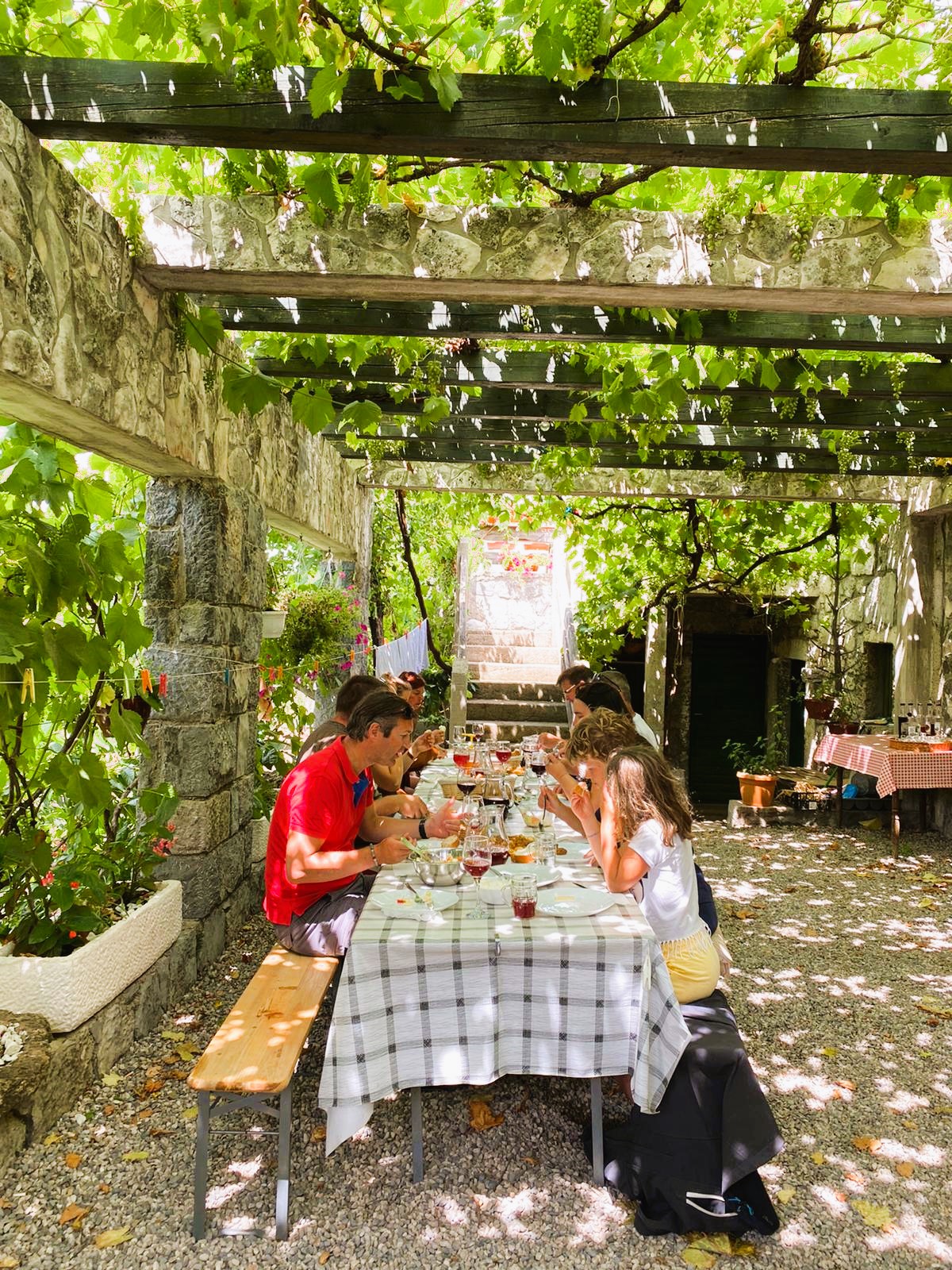 We zijn dan te voet gewandeld tot aan de boerderij waar de gids intussen, samen met de boer, een lekkere lunch had klaarstaan op een terrasje met prachtig uitzicht op het gebergte. Soms zie je ook de kudde wilde paarden (waarbij je echt vlakbij kon komen), maar dat is natuurlijk nooit zeker.