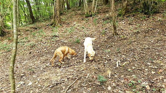 Onze honden hadden een viertal truffels gevonden. De truffeljager moest altijd snel reageren want de honden zelf zijn ook dol op truffels. Als je te lang wacht, eten ze die zelf op. Je kunt er zowel witte als zwarte truffels vinden. De witte zijn echter zeldzaam en zeer duur. De zwarte truffels kun je echter het ganse jaar door vinden.