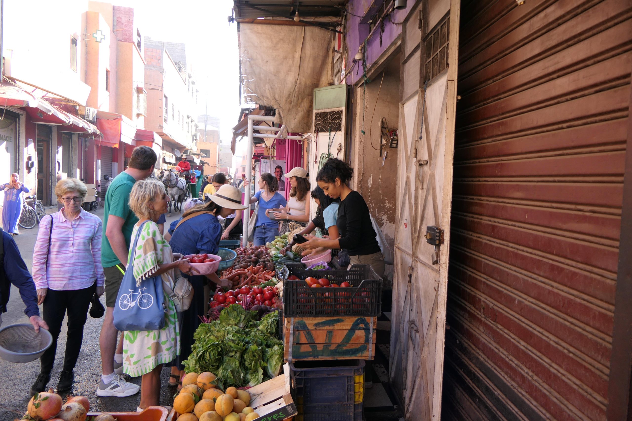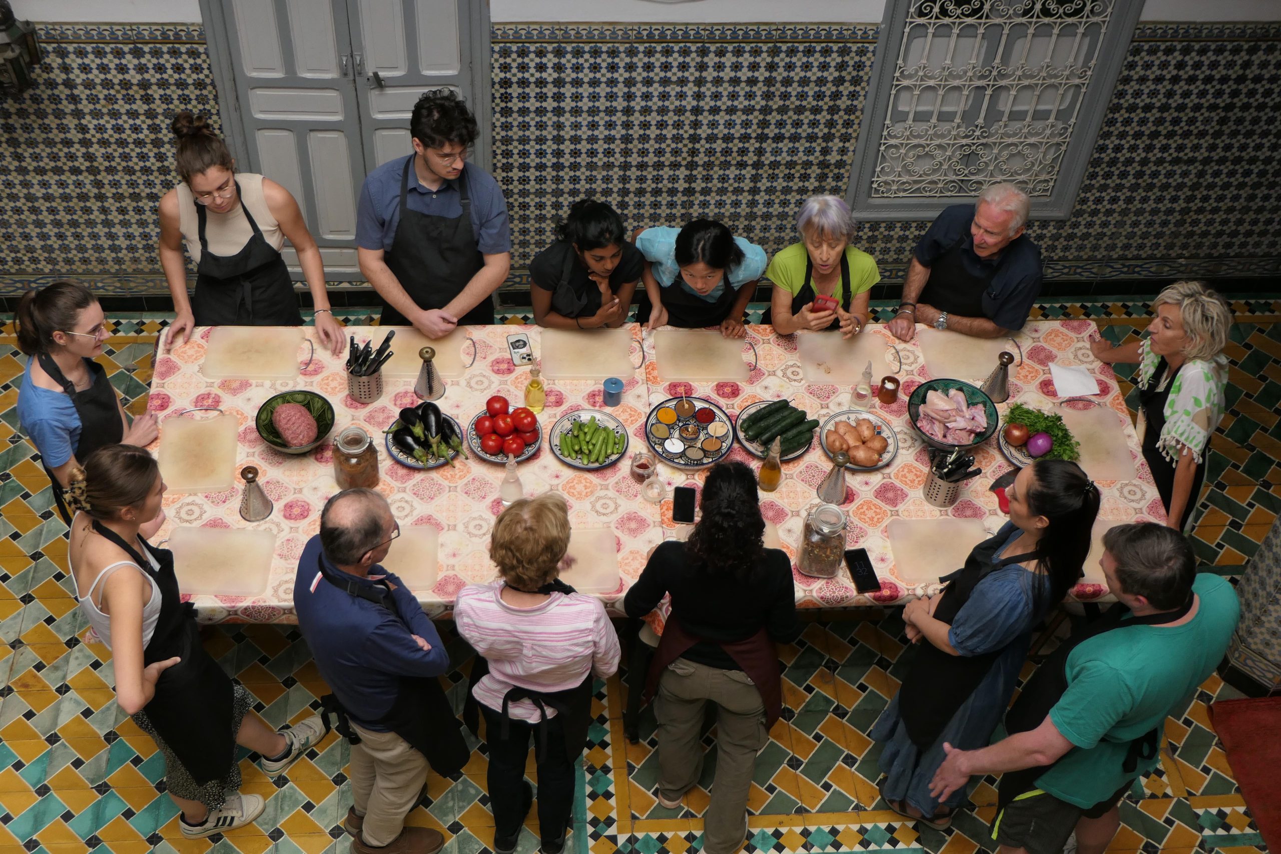 Het Marokkaans kookavontuur begint op de levendige lokale markt waar jullie verse groenten, vlees en fruit gaan kopen om heerlijke gerechten te bereiden. Samen verkennen jullie de kraampjes waar vrolijke verkopers hun producten aanprijzen. De gezellige drukte van de markt creëert een opwindende sfeer. Het is een perfecte gelegenheid om meer te leren over de lokale ingrediënten die je straks in de keuken gaat gebruiken.