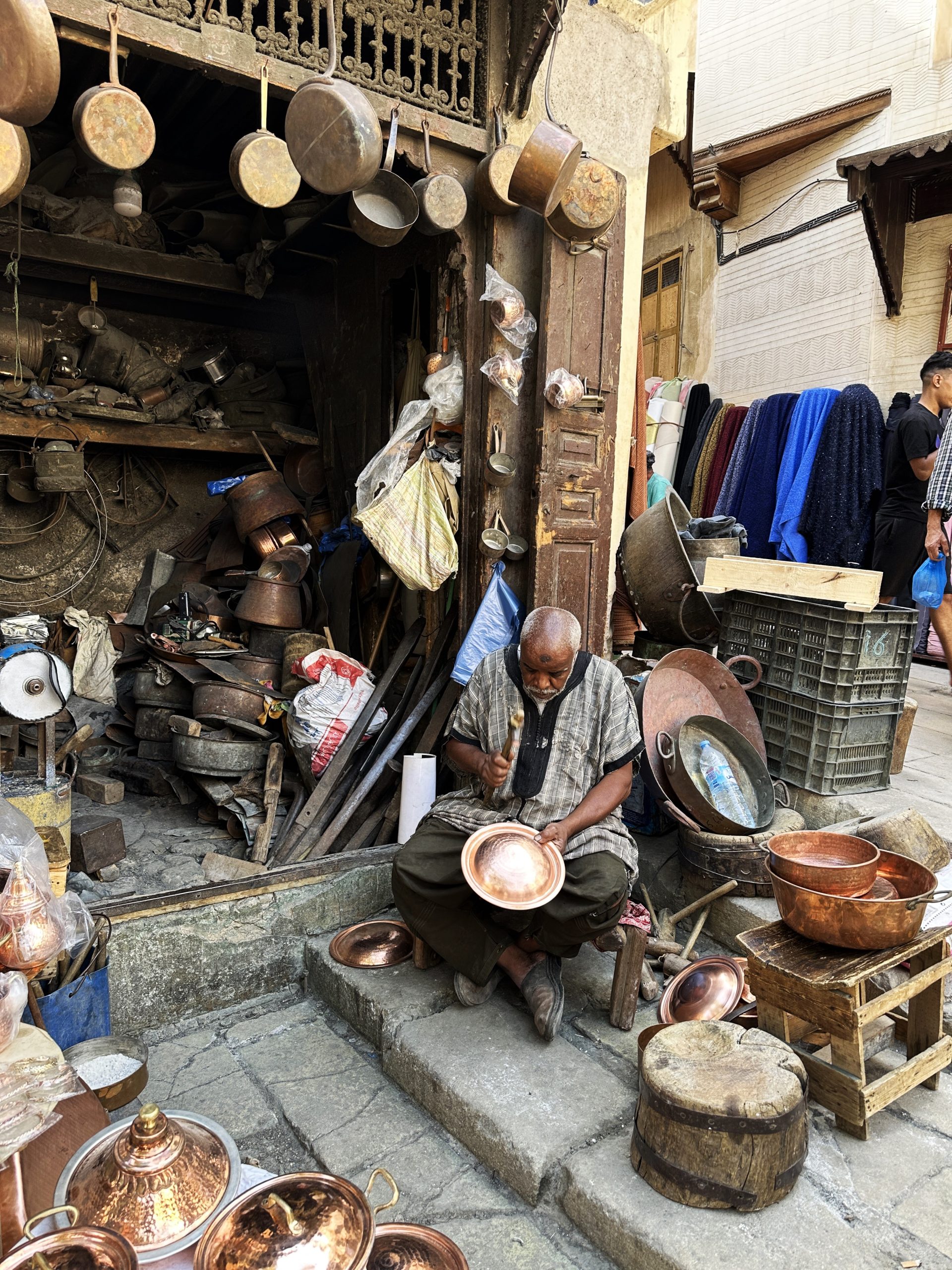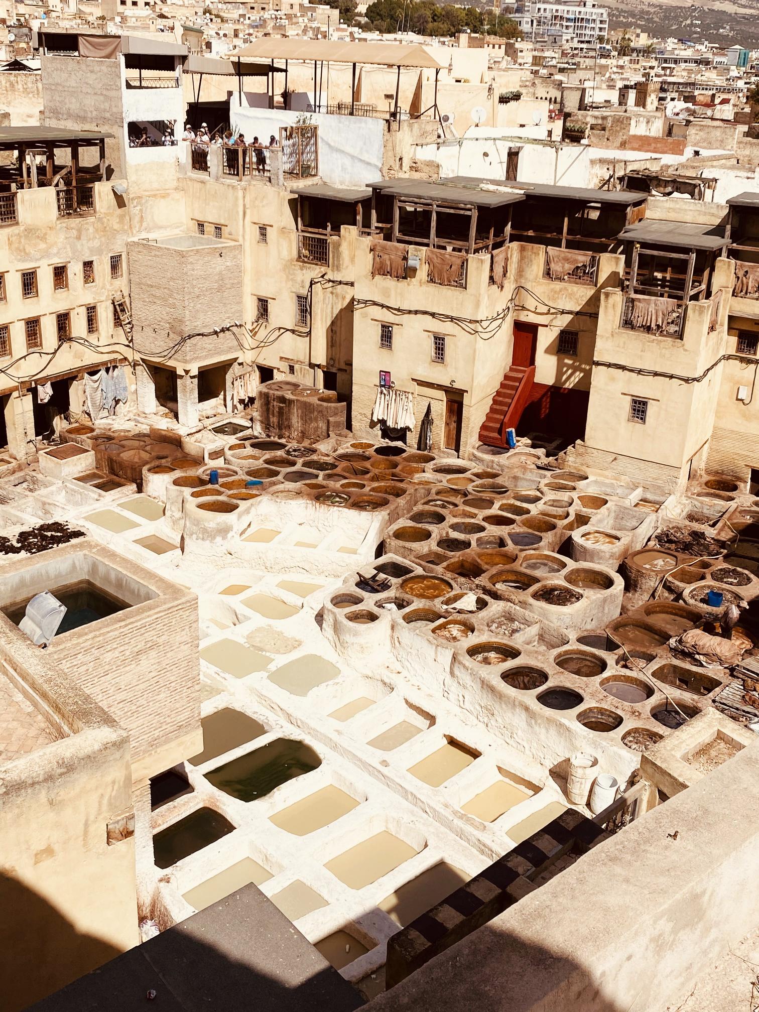 De meeste indrukwekkende stop is die aan de Chouara-leerlooierij, een van de oudste en meest indrukwekkende leerlooierijen ter wereld! Hier bewerken ambachtslieden het leer op traditionele wijze met behulp van eeuwenoude technieken. Je zult zien hoe de huiden worden geverfd in kleurrijke vaten. Daarnaast gebruiken ze duivenpoep om het leer soepel te maken, wat voor een sterke geur zorgt. Hoewel dit niet altijd even fris ruikt, is het toch een fascinerende ervaring om te zien hoe dit ambacht in zijn authentieke vorm wordt uitgevoerd. De levendige kleuren en het traditionele vakmanschap maken het zeker een bezoek waard!