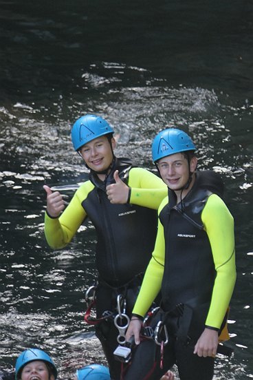 Ten slotte maken we ons op voor de eerste sprong in het verfrissende water. Canyoning is een mooie combinatie van afdalen van rotsen met touwen, springen van de hoge rotsen en een natuurlijke glijbaan. Als je wat avontuurlijke kinderen hebt, vinden ze dit geweldig! De tocht duurt ongeveer twee uur. Het hoogtepunt was de afdaling van de waterval op het einde.