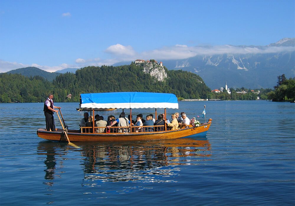 De Pletna is een traditionele overdekte gondel die alleen in Bled te vinden is. Vroeger vervoerden de Pletna’s pelgrims naar het kerkje op het eilandje in het meer en jullie treden vandaag in hun voetsporen. Want middenin dit mooie meer, ligt een charmant eiland met kerkje erop.