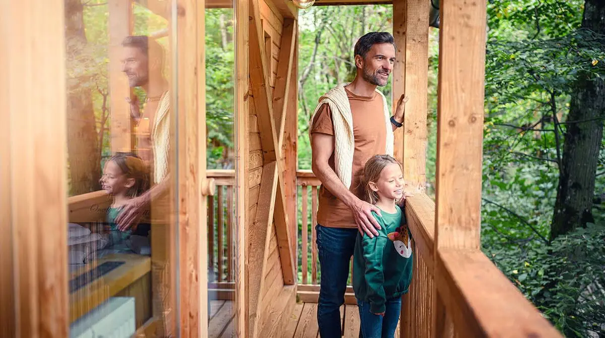 Je overnacht op een speciale locatie want jullie slapen vannacht in een boomhut middenin het bos met eigen hottub! Tijd om volledig te relaxen met het ganse gezin in een adembenemende omgeving.