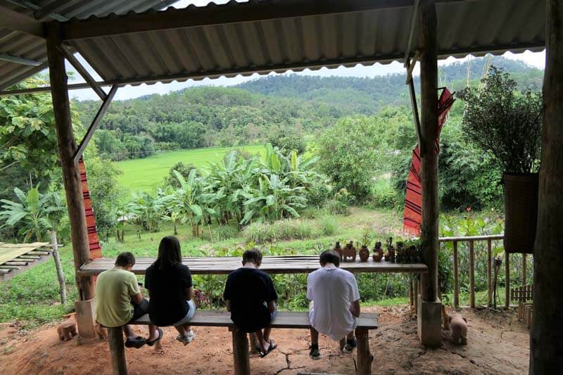 In de late namiddag kom je aan bij de familie die tot de “Karen”-stam hoort. Deze guesthouse is simpelweg prachtig gelegen met zicht op de rijstvelden. De heel vriendelijke familie stelt je meteen op je gemak en brengt je naar je privé-slaaphut. Dat is even klimmen, maar wat een zicht krijg je daarvoor in de plaats! Zorg zeker dat je wat tijd voorziet om gewoon op je terras te zitten en te genieten van het zicht.