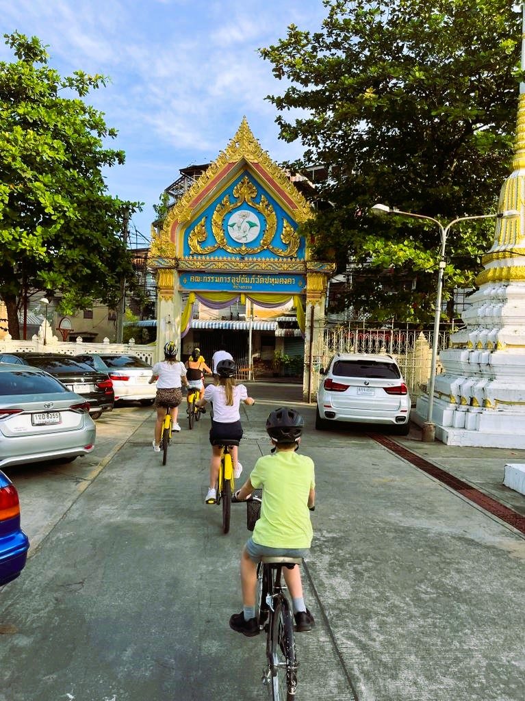 ’s Morgens vroeg pikt de chauffeur jullie op en brengt jullie naar het startpunt van deze tour. Vandaag gaan jullie met de fiets door Bangkok. Er zijn fietsen voorzien voor kinderen en zitjes voor de allerkleinsten. De tour duurt 3 uur en is gemakkelijk ook voor de niet-ervaren fietsers.